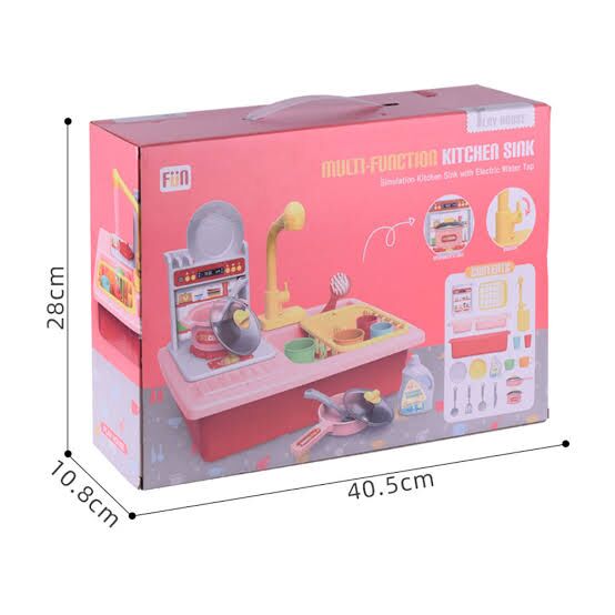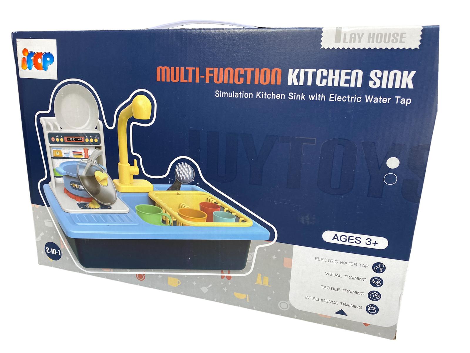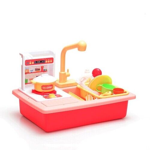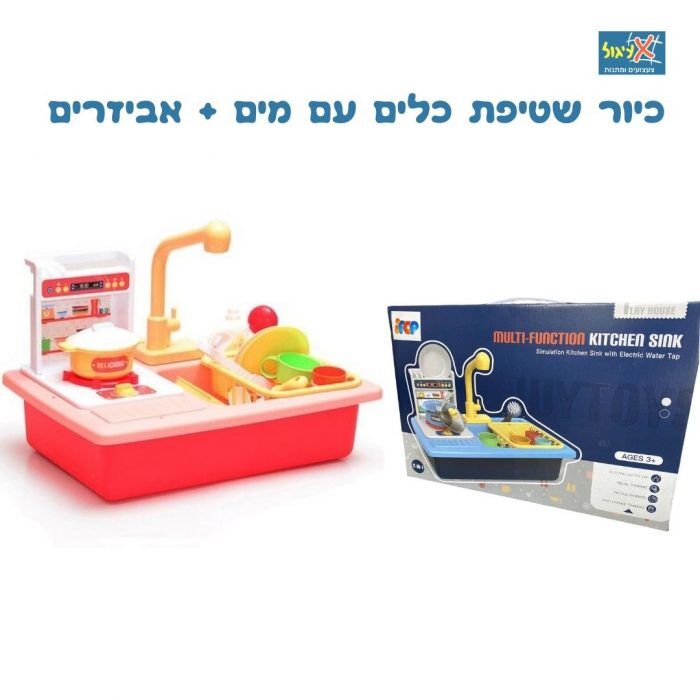 כיור שטיפת כלים לאוסף האביזרי המטבח של הקטנים, אלקטרוני ופועל באמצעות סוללות, ומזרים מים אמיתיים מהברז לחווית משחק אמיתית.